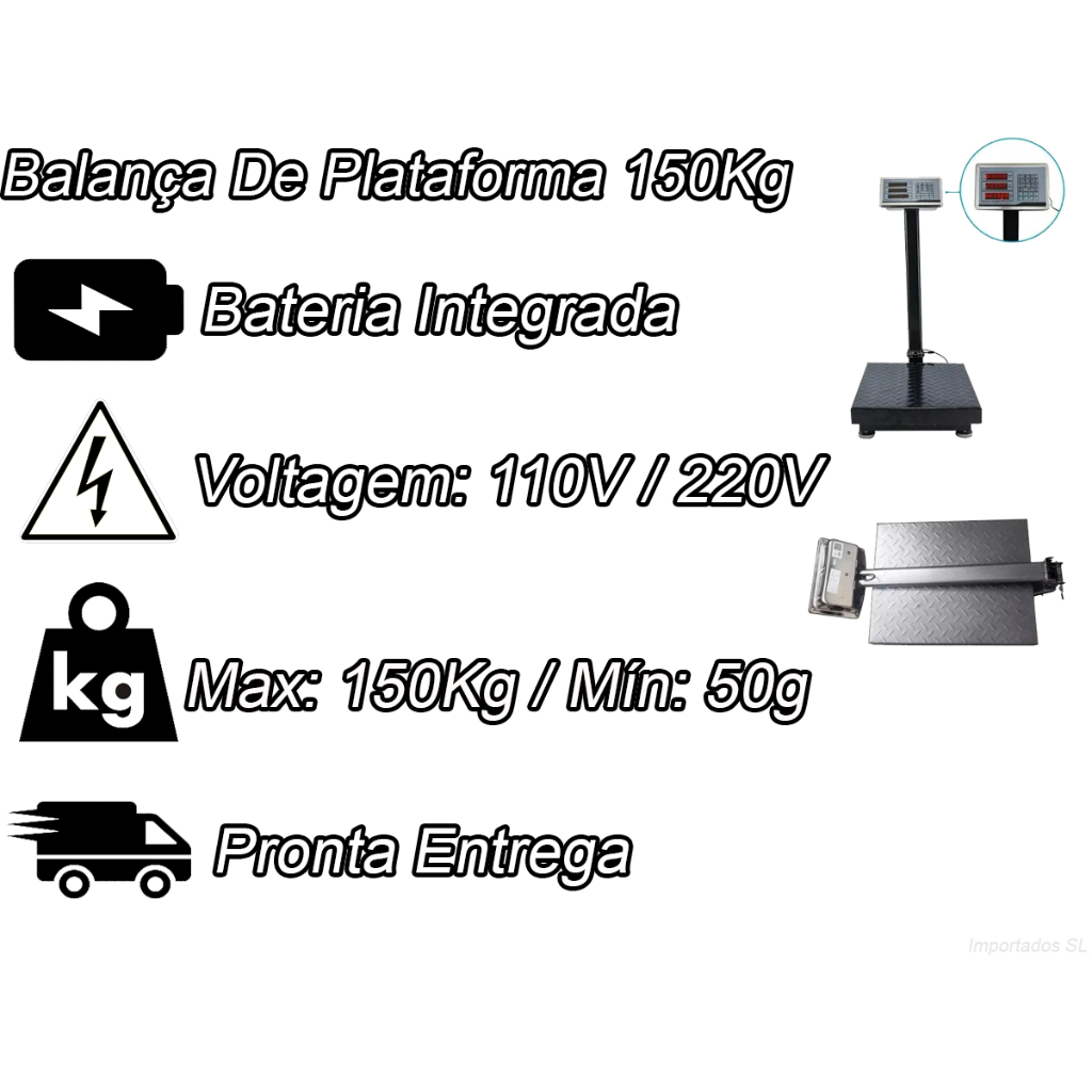 Balança De Plataforma Painel Digital 150Kg Com Bateria Envio Rápido