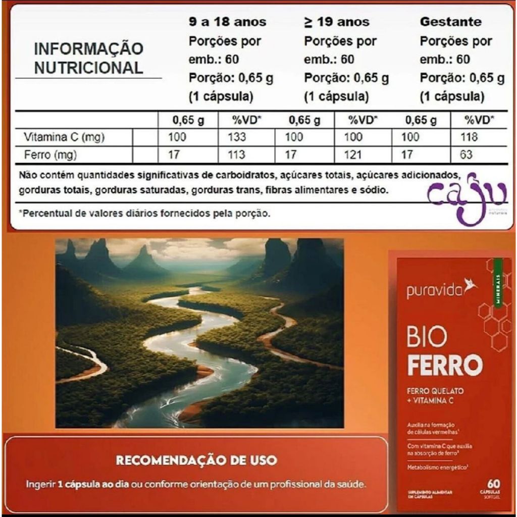 Bio Ferro(ferro quelato +vitamina c)60 caps Pura Vida