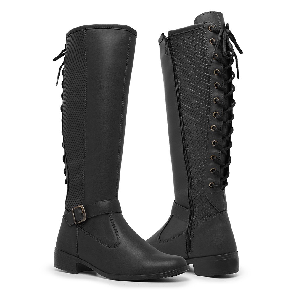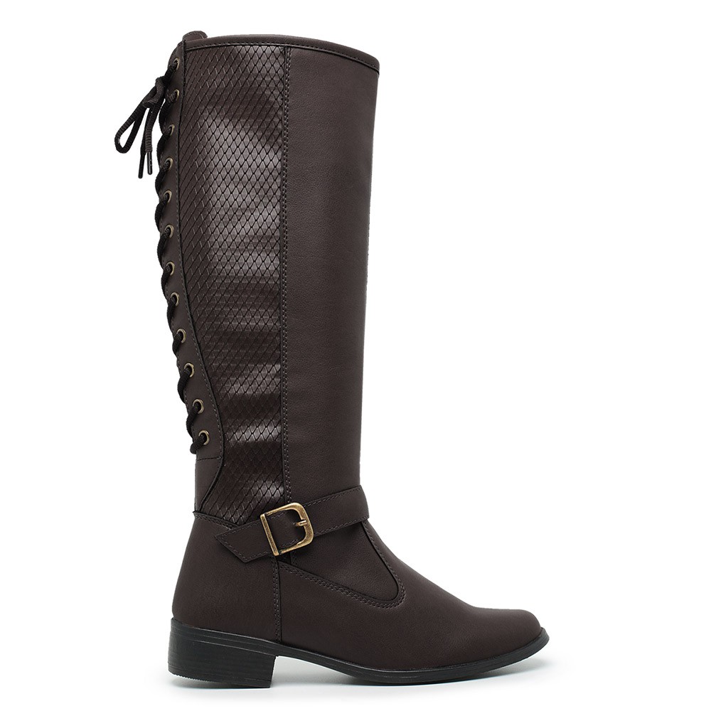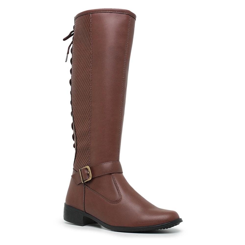Bota Feminina Cano Alto Longo com Amarração em Couro Salto baixo Montaria