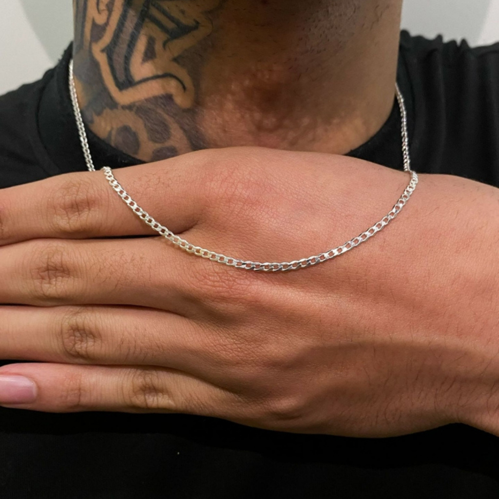 Corrente Masculina Grumet 60cm Fininha Aço Inox Prata Brilhante 2mm Não Escurece Colar Cordão