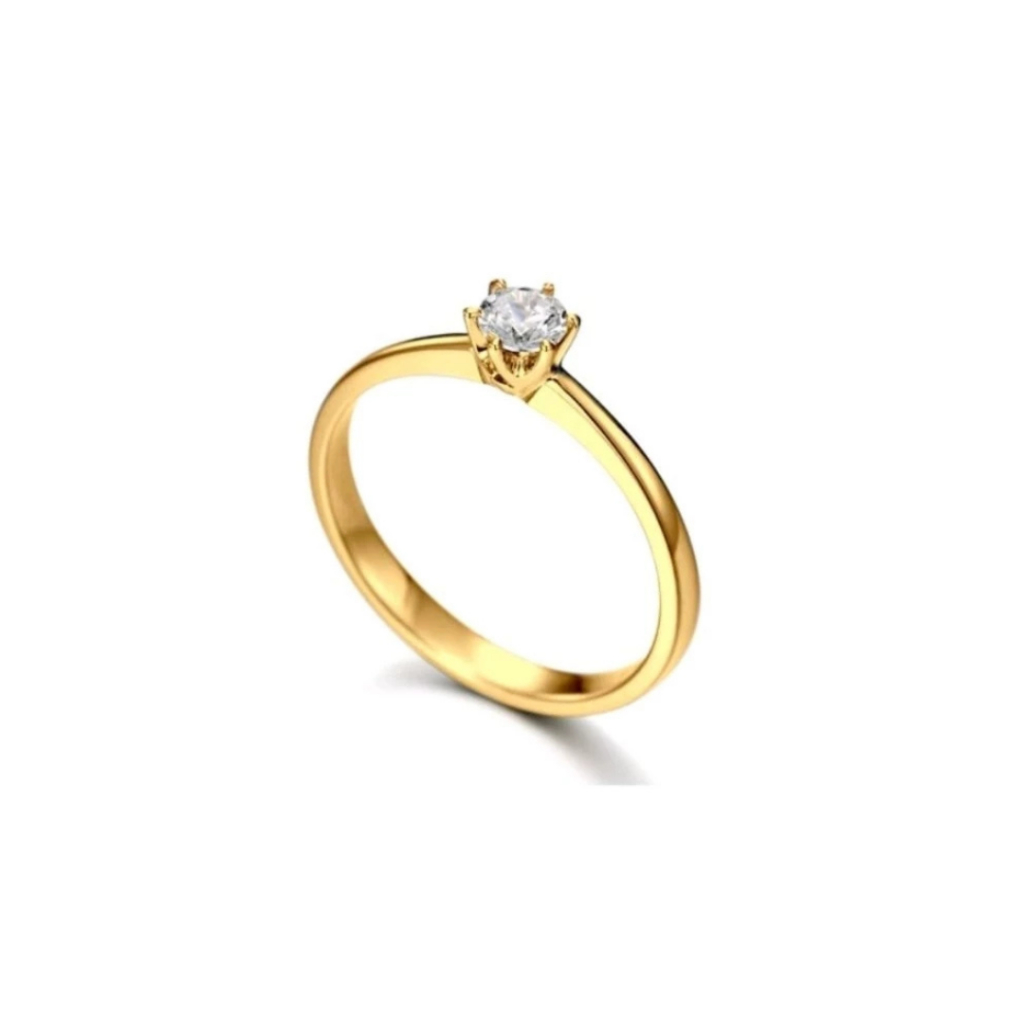 Anel Feminino Solitário Dourado Aço inox Prata com pedra 2mm Não Escure Não Enferruja