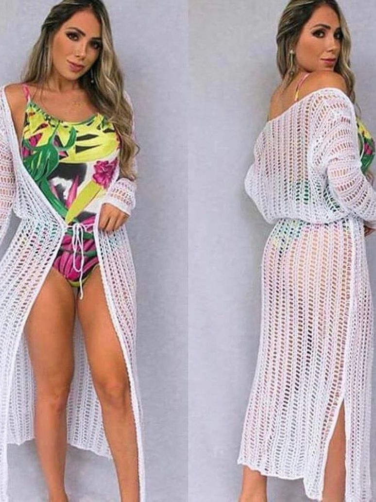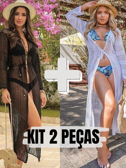 Kit Conjunto 2 Saída de Praia Feminino Manga Longa Tricot Verão Promoção Estilo Transparente