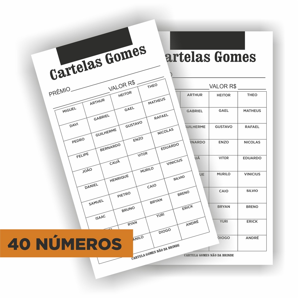 Kit 30 Cartelas de rifas com 40 NÚMEROS • (Homem, Mulher, Numeral e Animais)