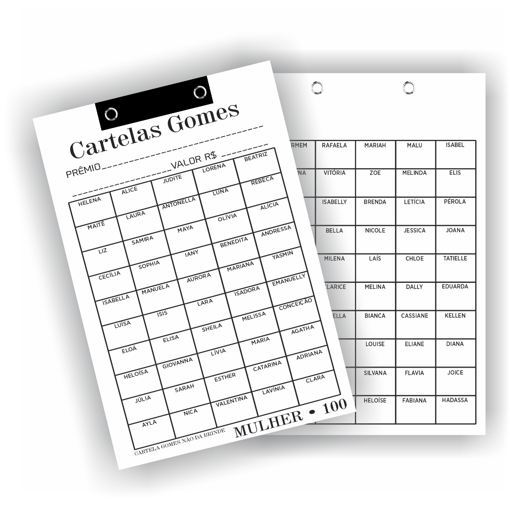 Cartelas de Rifa com 100 Nomes de Mulher | Feminina | Prontas para Uso