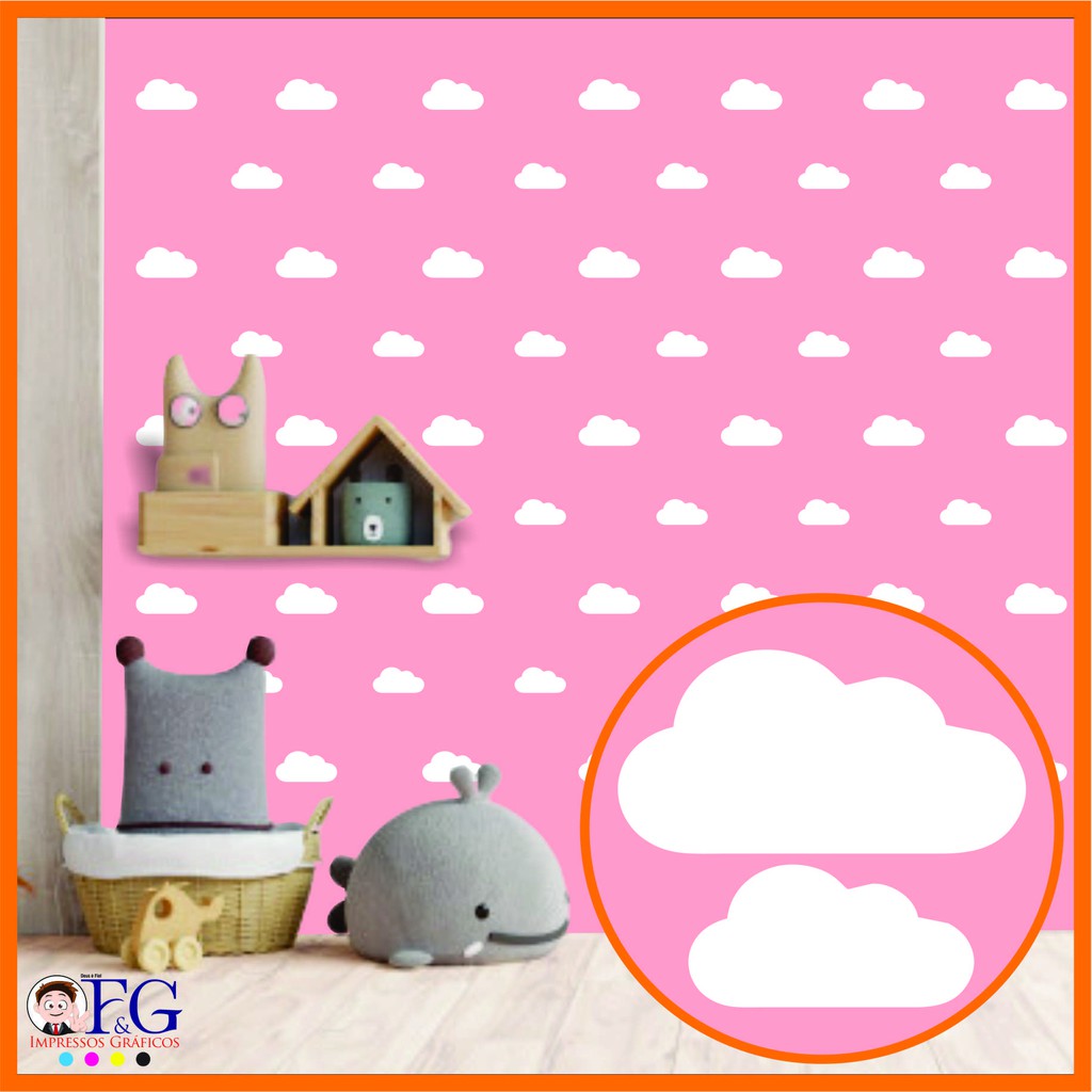 112 Adesivos Decorativo de Parede Quarto Infantil Nuvens 40un 10cm + 72un 7cm