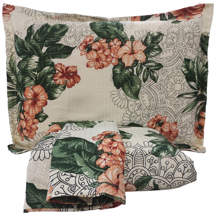 Cobre Leito Casal Padrão Piquet Algodão 3 Peças