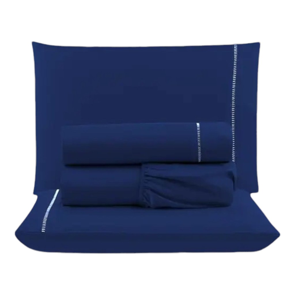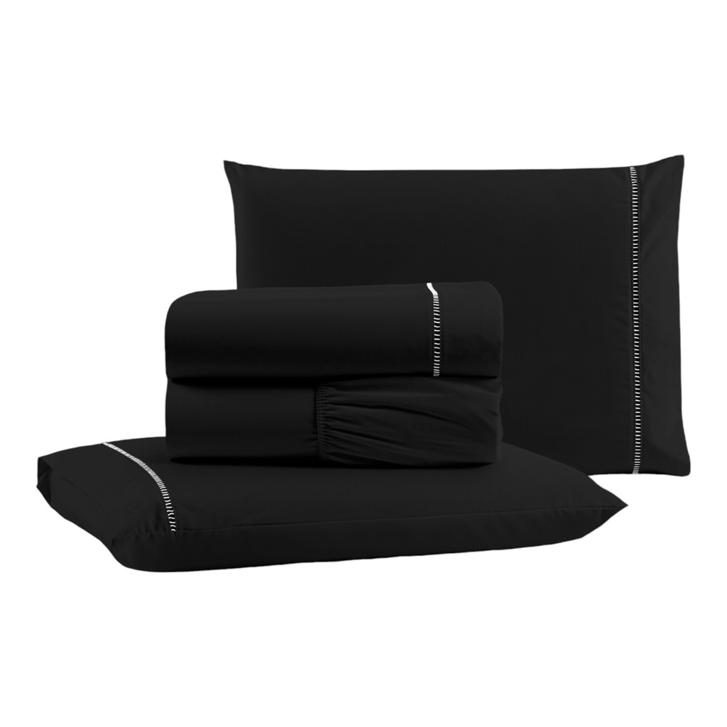 Jogo de Lençol Casal Padrão Ponto Palito 4 Peças Micropercal 200 Fios