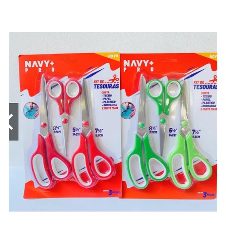 Kit 3 Tesouras Multiuso Multi Funções Cabelo Papel Plástico Borracha Eva, costura e utilidades cozinha Tesoura