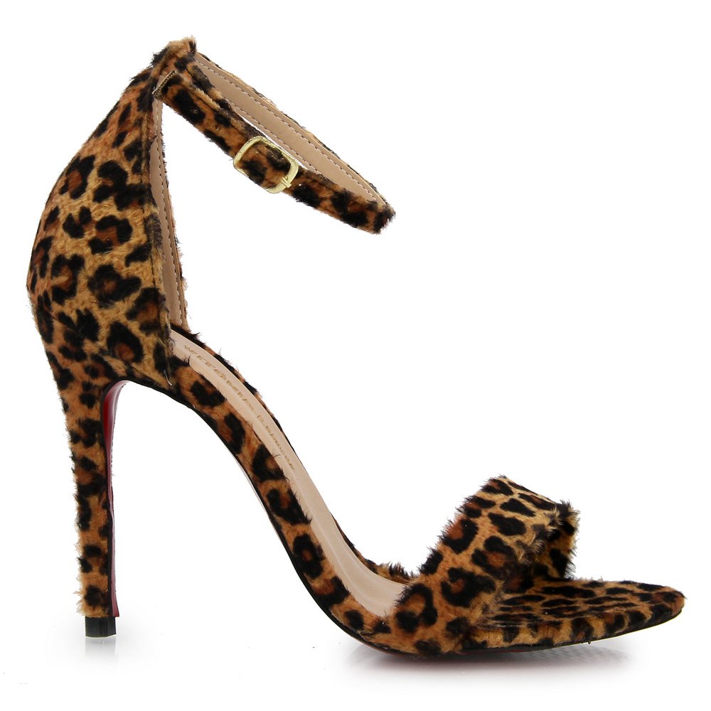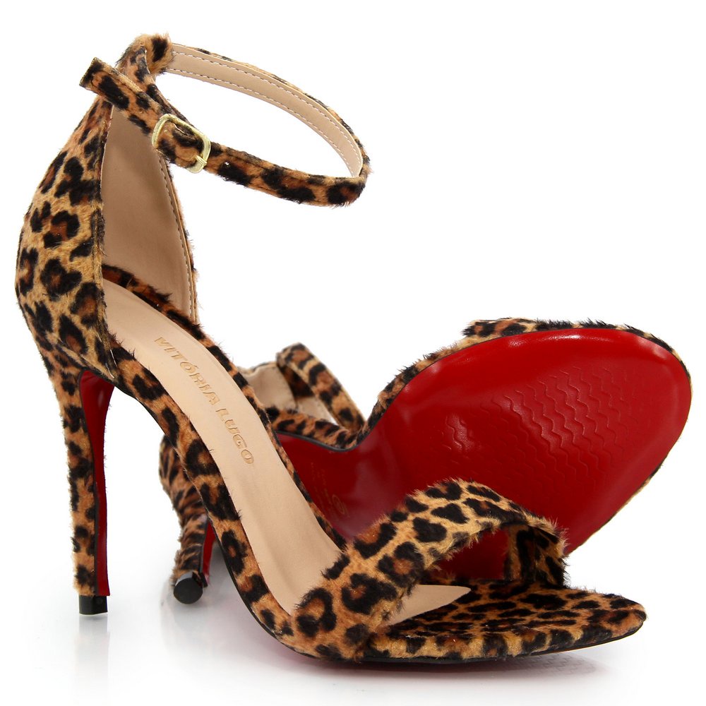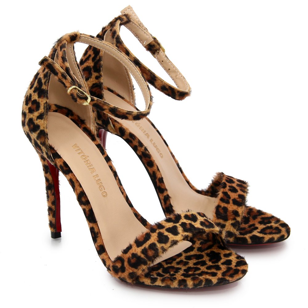 Sandalia Feminina Onça Salto Alto Bico Redondo
