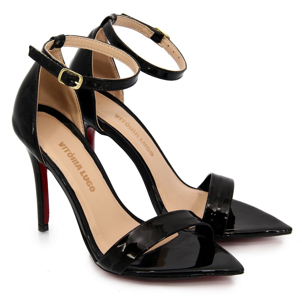 Sandalia Preta Feminina Gissele Salto Fino