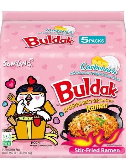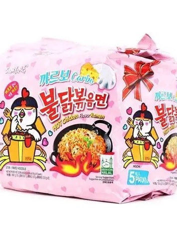 Kit 5 Uni Macarrão Instântaneo Miojo Coreano Hot Chicken (Frango Apimentado) Ramen Sabor CARBONARA