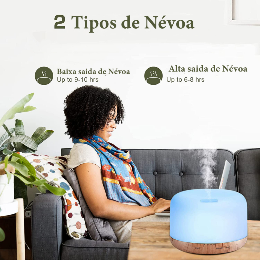 Difusor Umidificador de 500ml Com Controle Remoto Ultrassônico Luz Led 7 Cores Super silencioso
