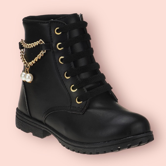 Coturno Bota Infantil Menina Corrente Pérola Tratorado Botinha