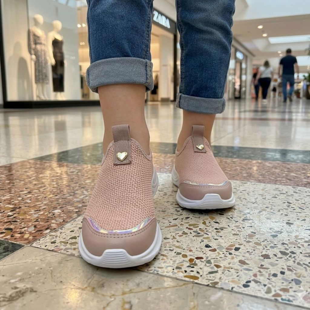 Tênis Infantil Menina Coração Calce Fácil Brilho Escolar Delicado