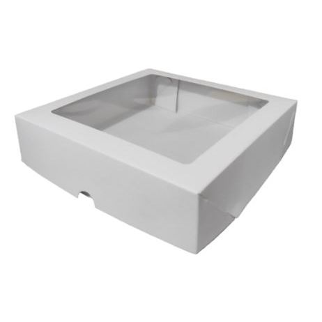 Caixa para Doces e Presente Branca 20 x 20 x 6 Tampa e Fundo com visor Acetato 20 unidades