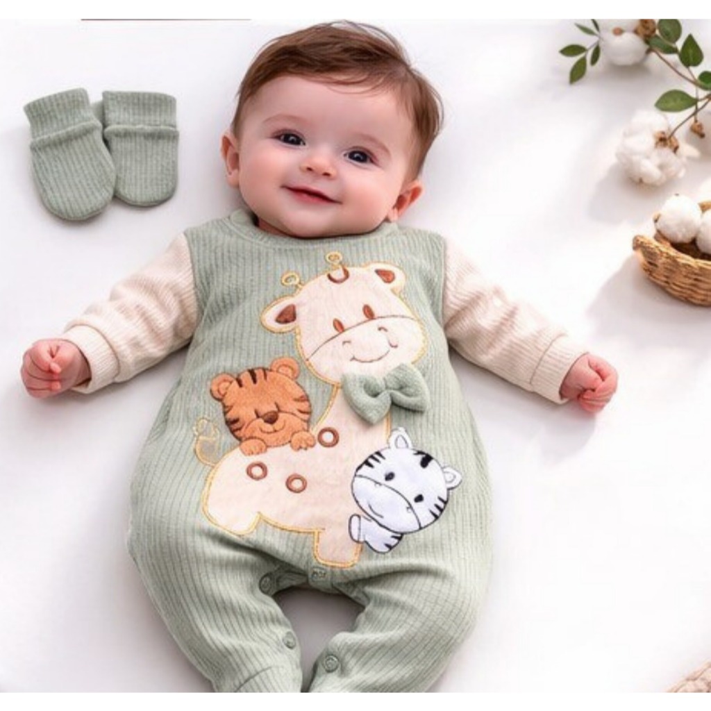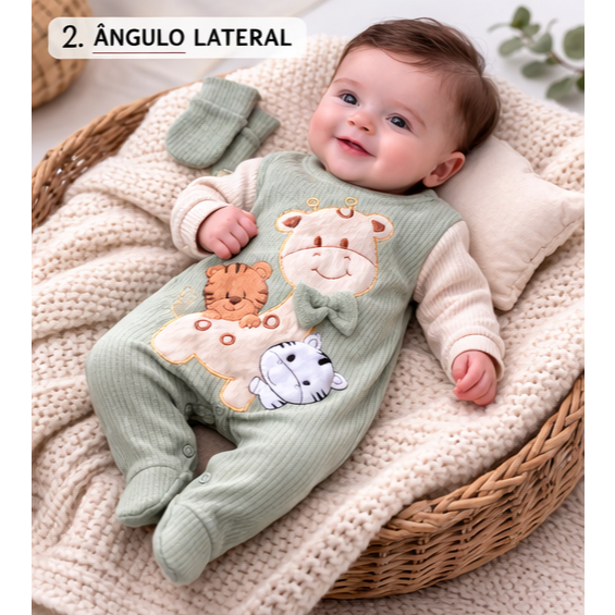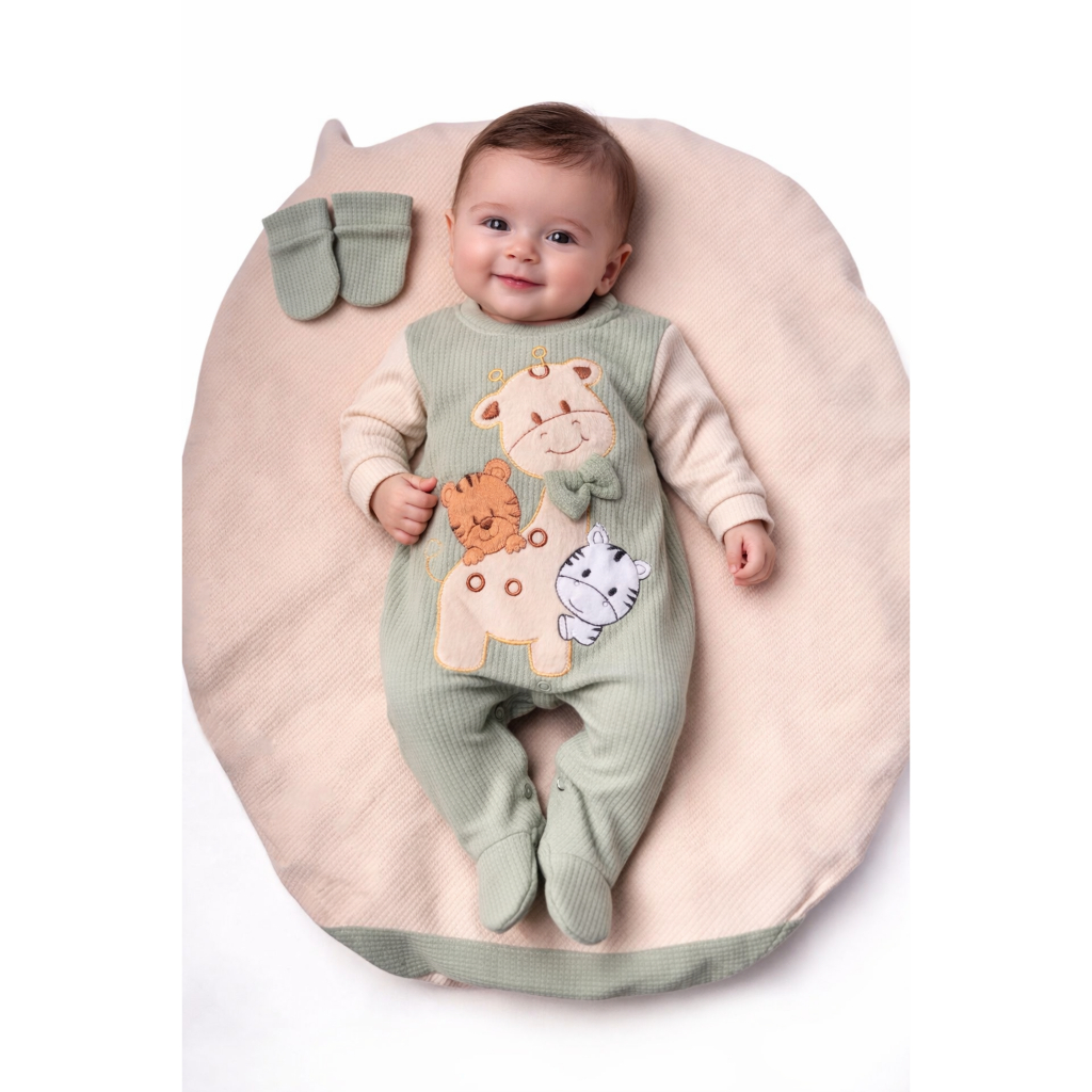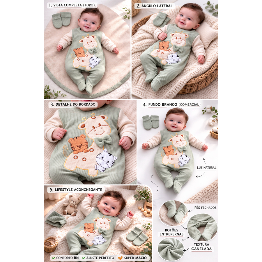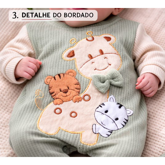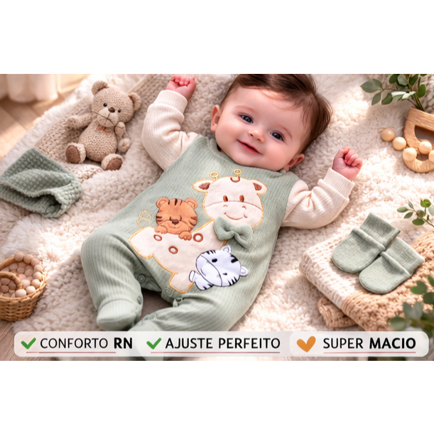 Saída Maternidade Menino Pedro 03 Peças Safari Malha Tricot Roupa de Bebê Menino