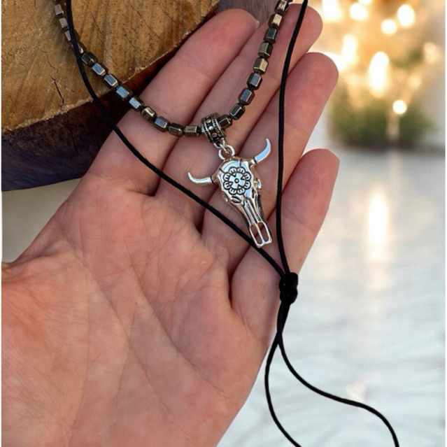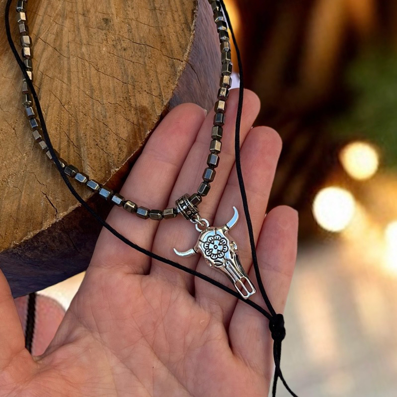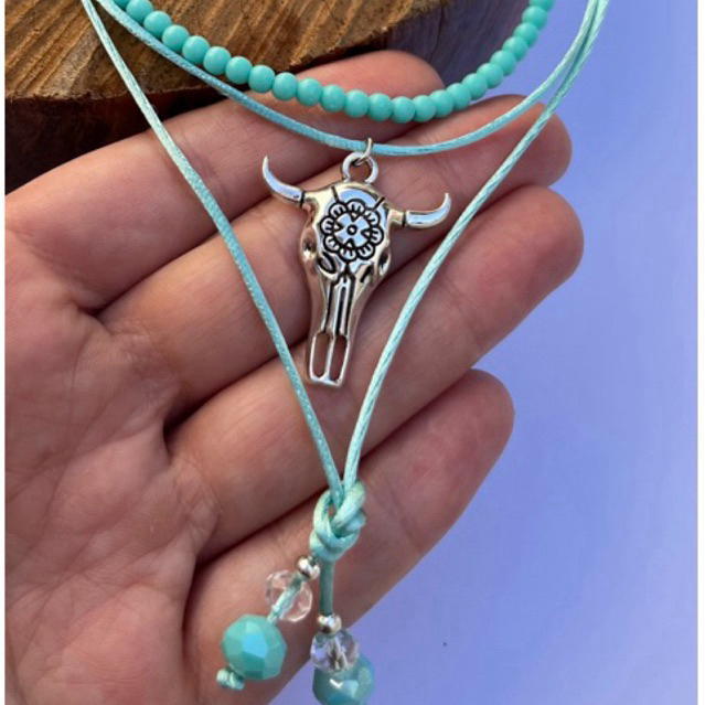 Colar country gravatinha turkesa pingente longhorn