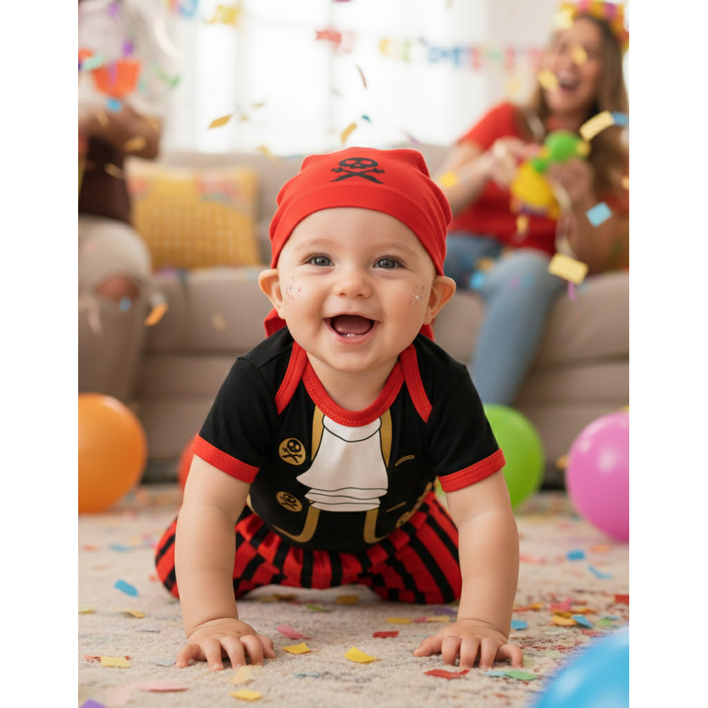 Body Bebê Fantasia Pirata + Short + Lenço Bandana