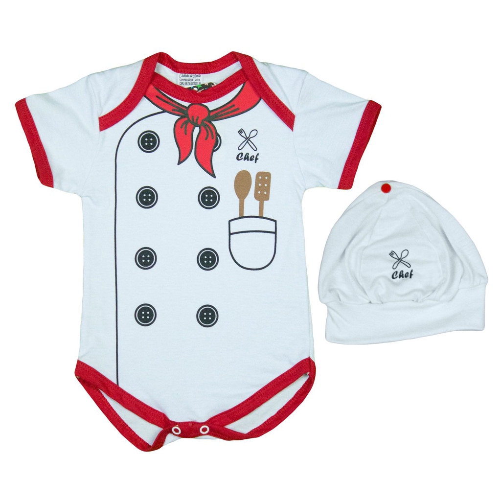 Body Bebê Fantasia Chef de Cozinha + Boina