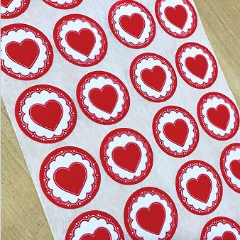 500 Etiquetas Adesivas Coração Vermelho Redondo 3 cm Adesivo decorativo para pacotes e produtos