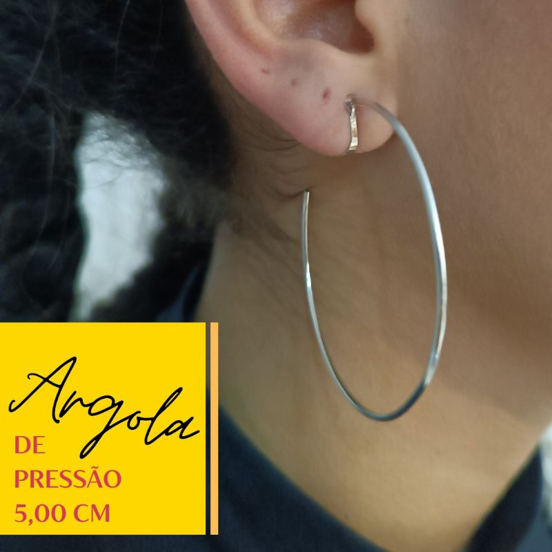 Argola de pressão - 5,00 cm fina prateado - NÃO PRECISA TER FURO NA ORELHA - PRODUTO BRASILEIRO
