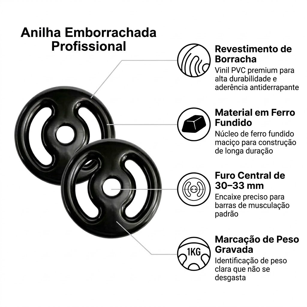 Par Anilhas Emborrachadas 10kg | One Life Sports® | Treino Força