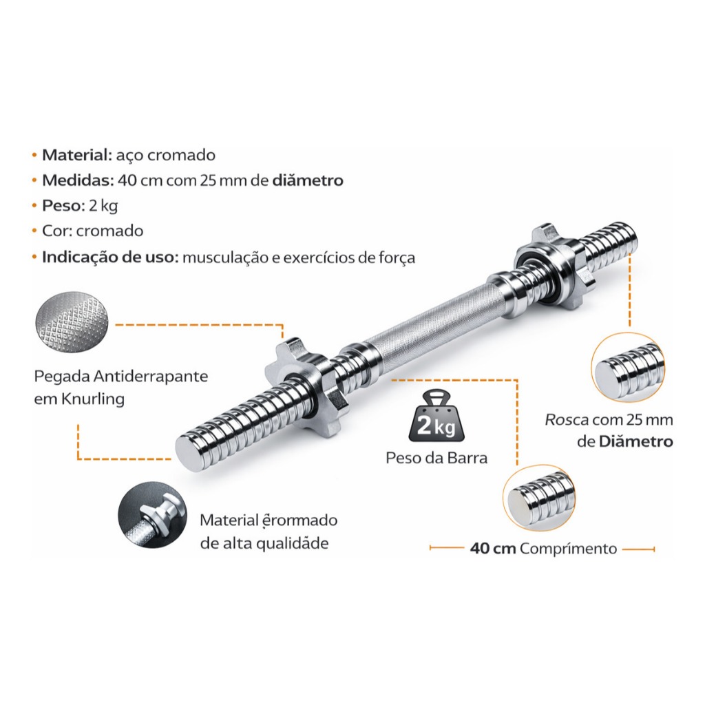 Par barra cromada 40 cm One Life Sports® | condicionamento físico peso funcional condicionamento