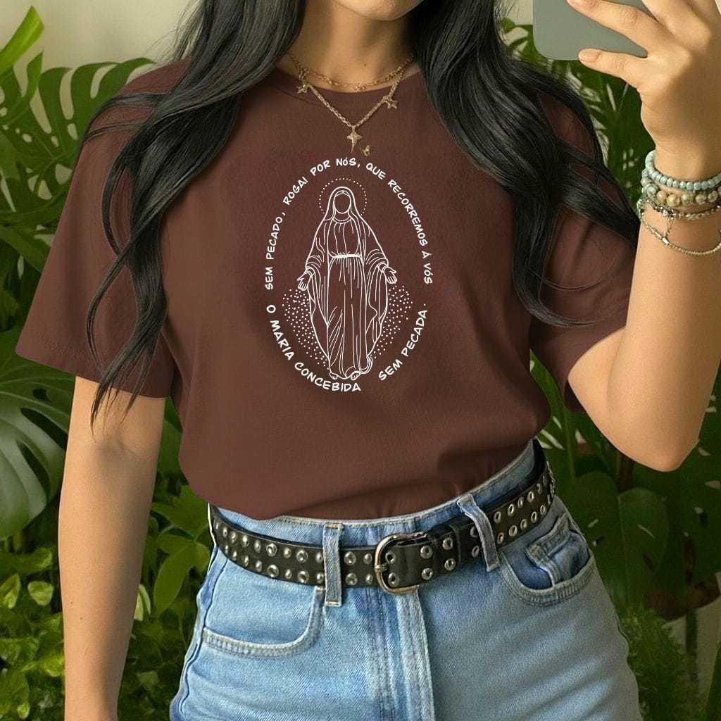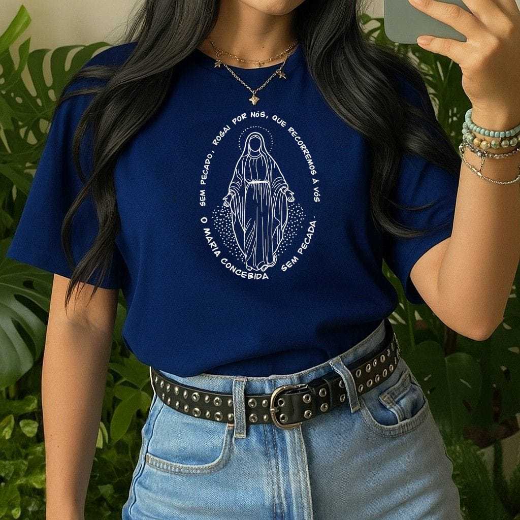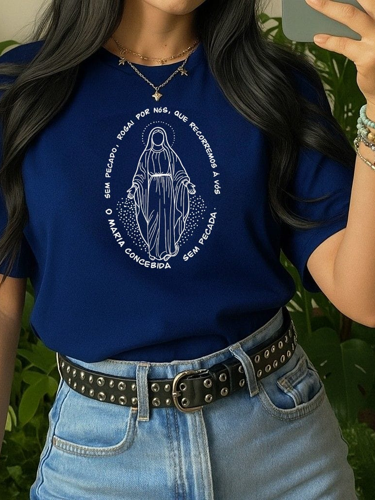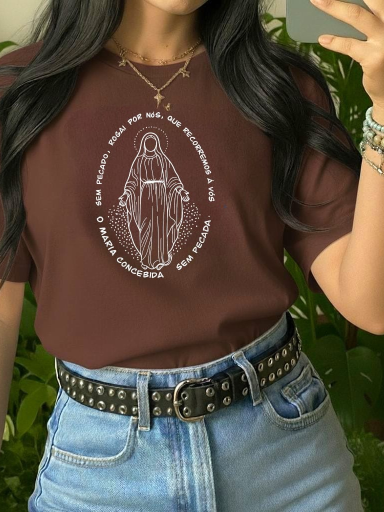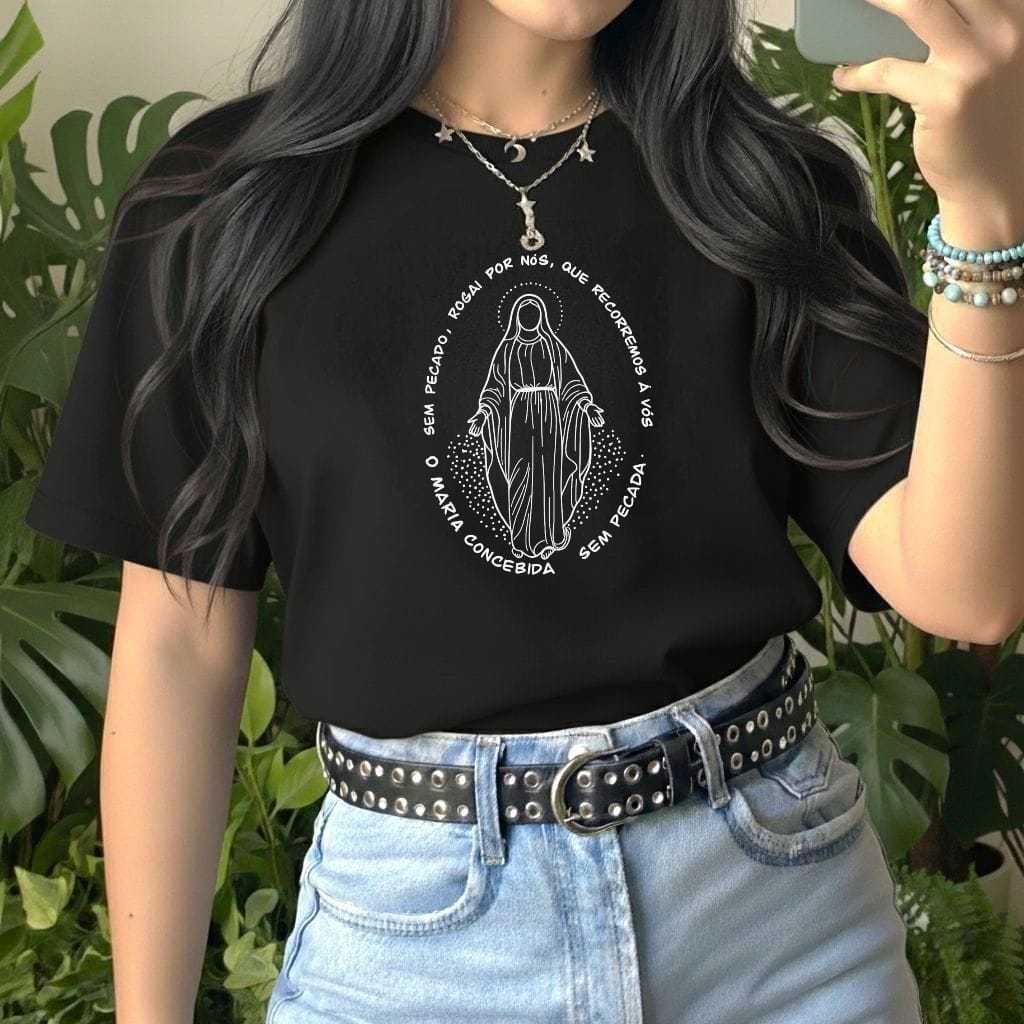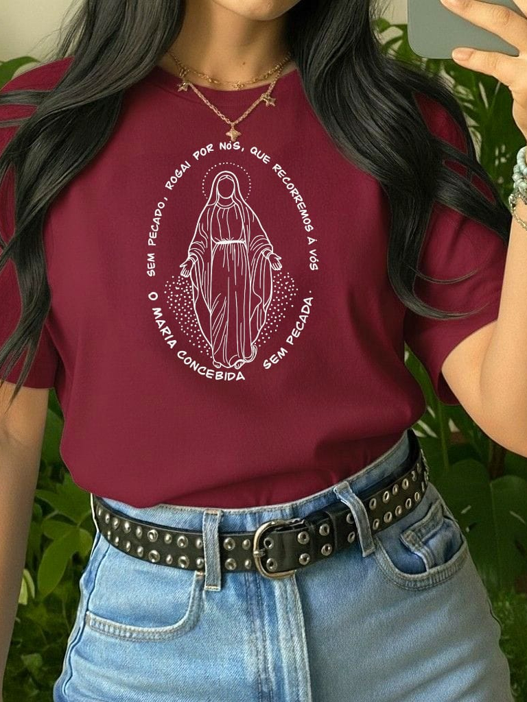 Camiseta Feminina Religiosa Católica Baby Look Fio 30.1 em 100% Algodão.