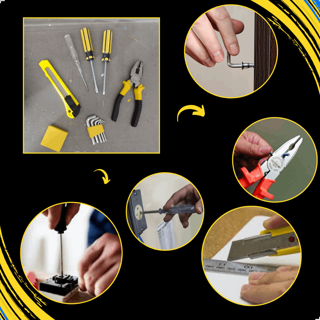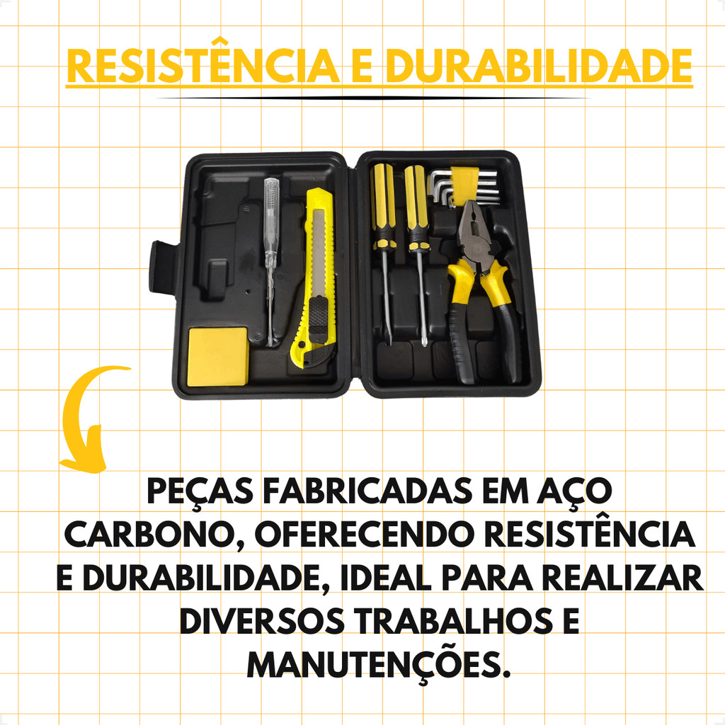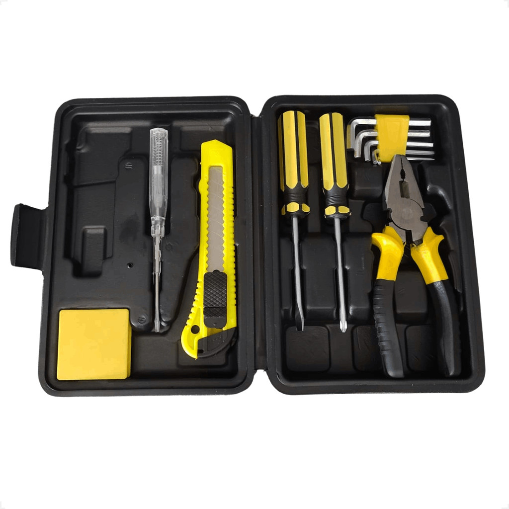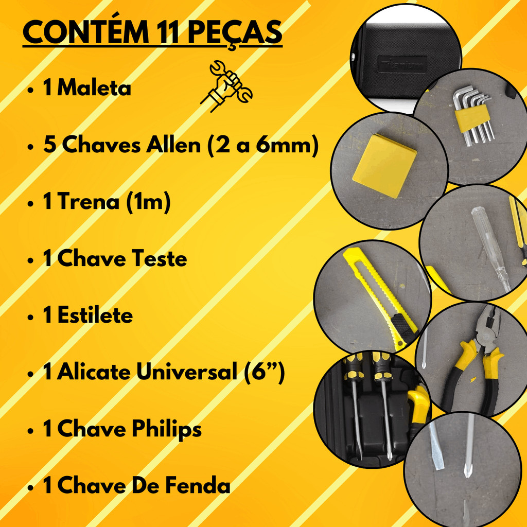 Jogo Ferramentas 11 Peças Maleta Reparo Manutenção Completa Alicate Chave Fenda Philips Trena Allen