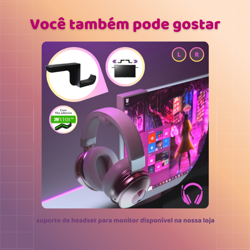 Suporte Headset Gamer Parede Gancho Adesivo Forte Sem Furo Organizador Fone