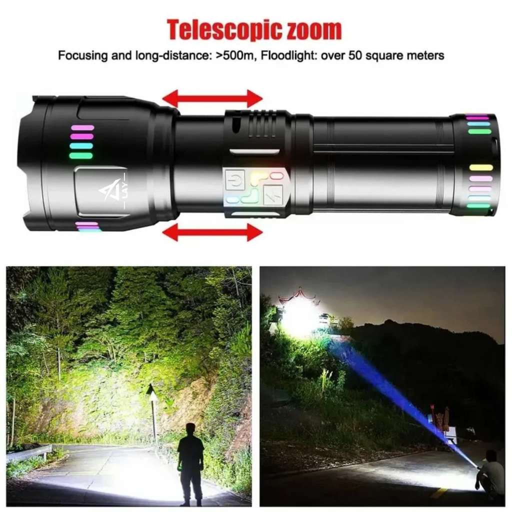 Lanterna Tática LED Laser Titanium Canhão de Luz Mais Potente Com 8 Pilhas Recarregal Lay-2175