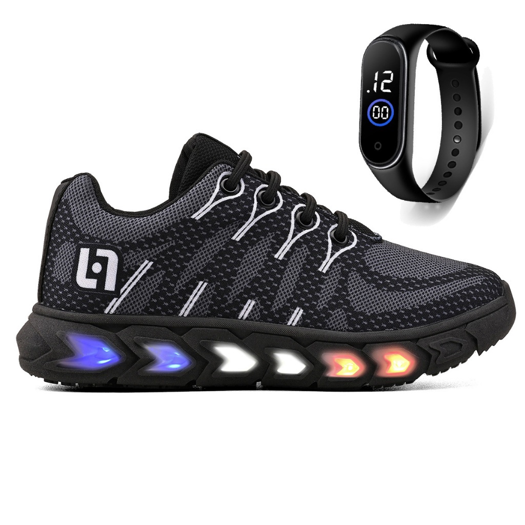 Tenis Infantil De Led Meninos Casual Preto Preto Com Luzes + Relógio Atacadão Divinopolis