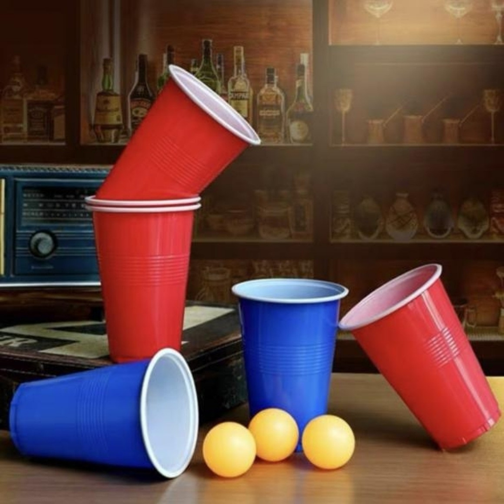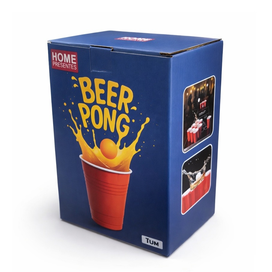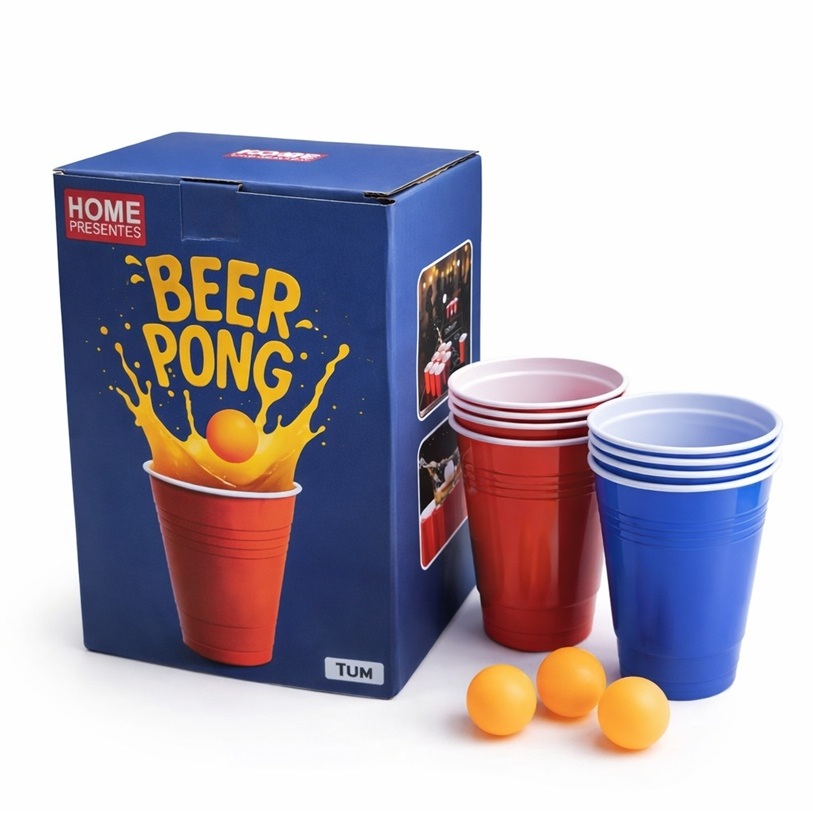 Jogo de Beer Pong c/ 12 Bolinhas e 12 Copos 400ml - Festa Estilo Americano - Cerveja