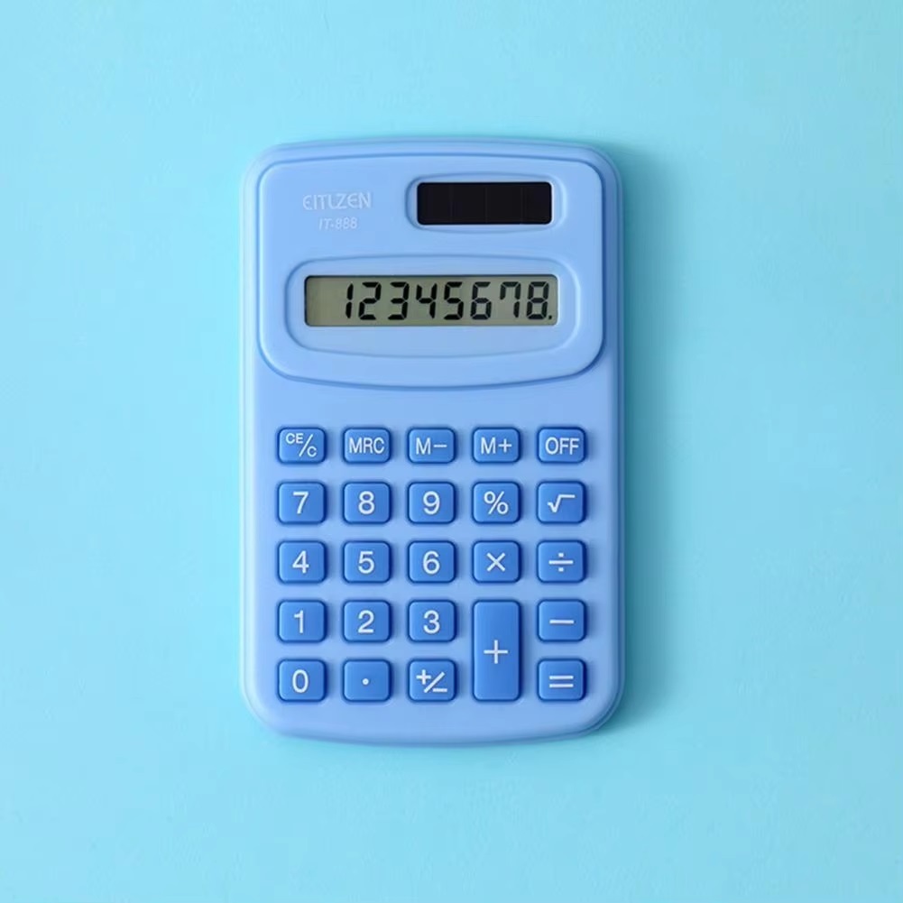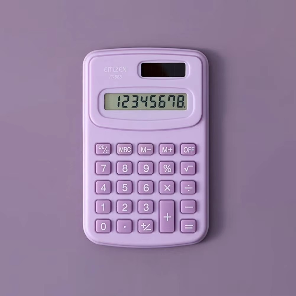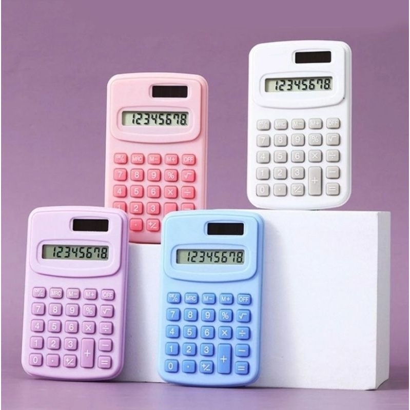 Mini Calculadora Digital de Bolso 8 Dígitos Estudante - Rosa Roxo Azul Branco - 10cm x 6cm