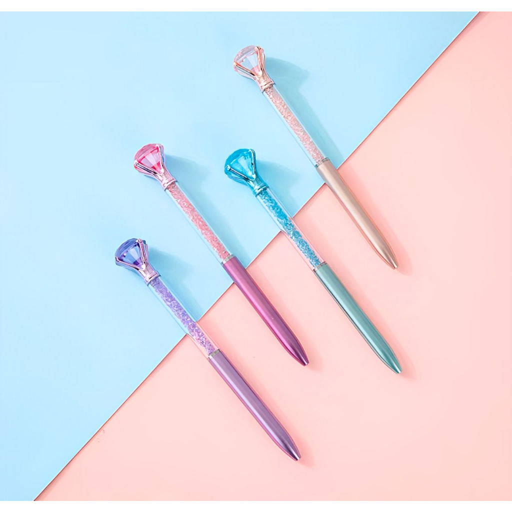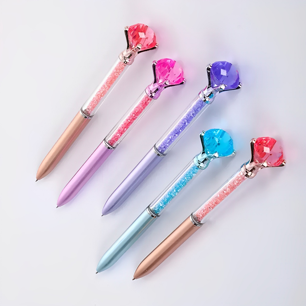 Kit Caneta Gel Esferográfica Diamante Cristal Luxo Ponta Fina