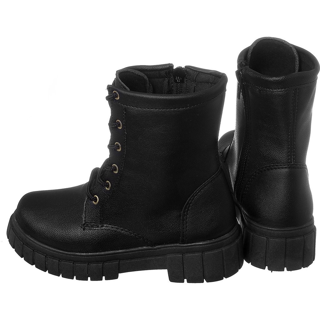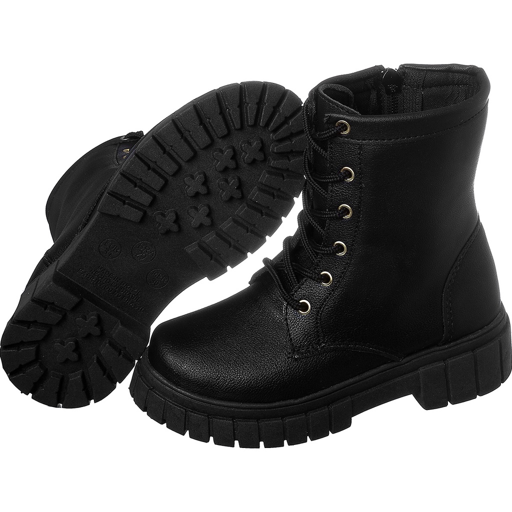 Bota Coturno Cano Curto Tratorado Preto Infantil Kidstep