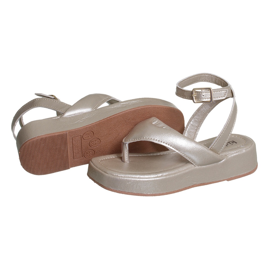 Kit 2 Pares Infantil Feminino Flat Dourada e Chinelo Fivela Preto Kidstep