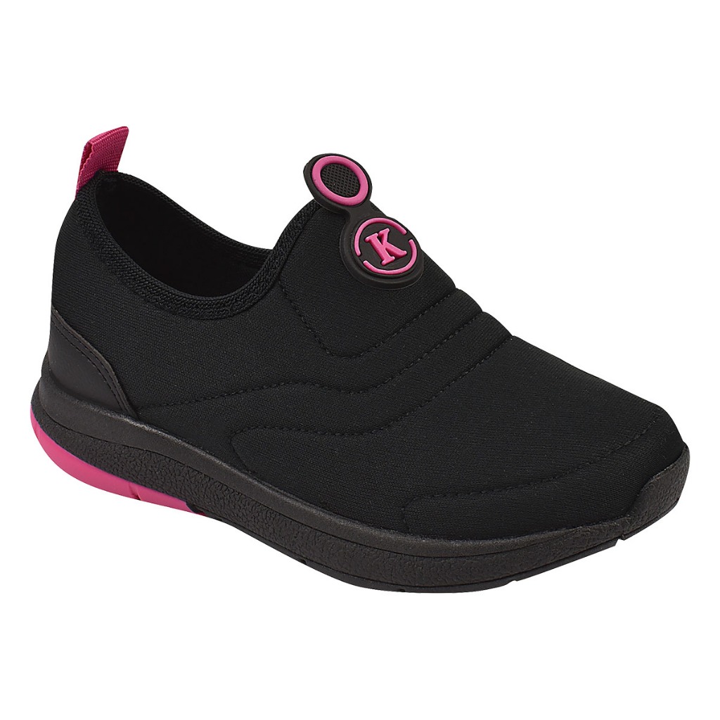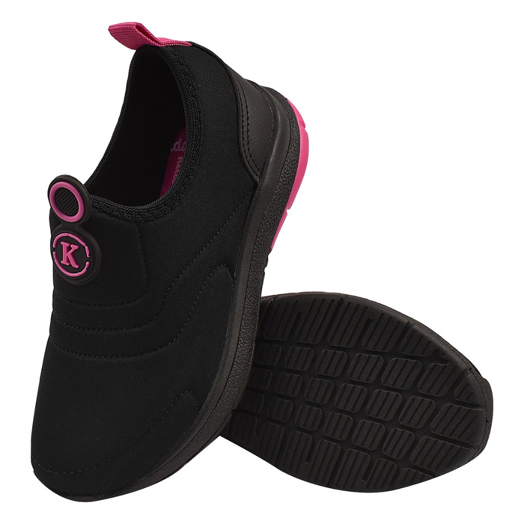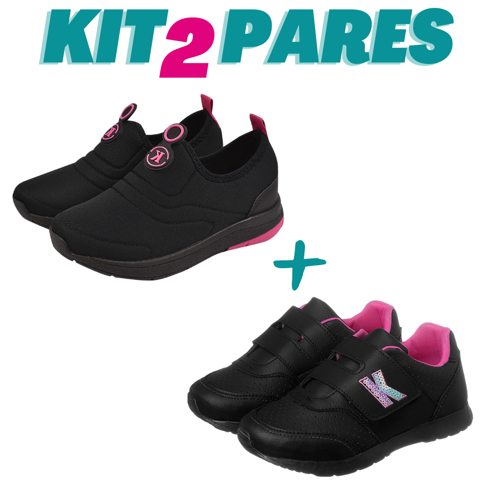 KIT 2 PARES Tênis Meia Calce Facil Infantil Menina Preto Pink e Tênis Jogging Bordado Preto Pink Kidstep
