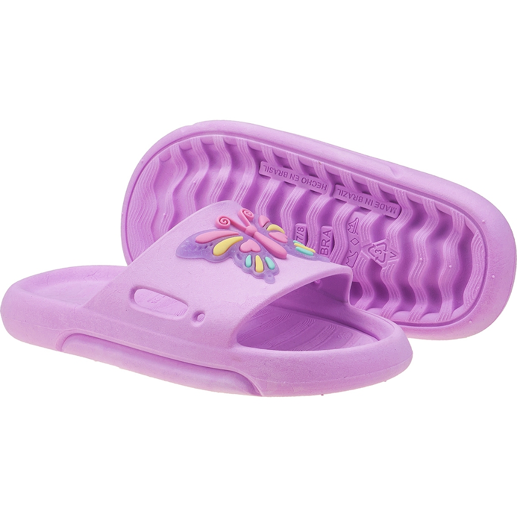 Chinelo Nuvem Slide Infantil Feminino Borboleta Colorida Kidstep