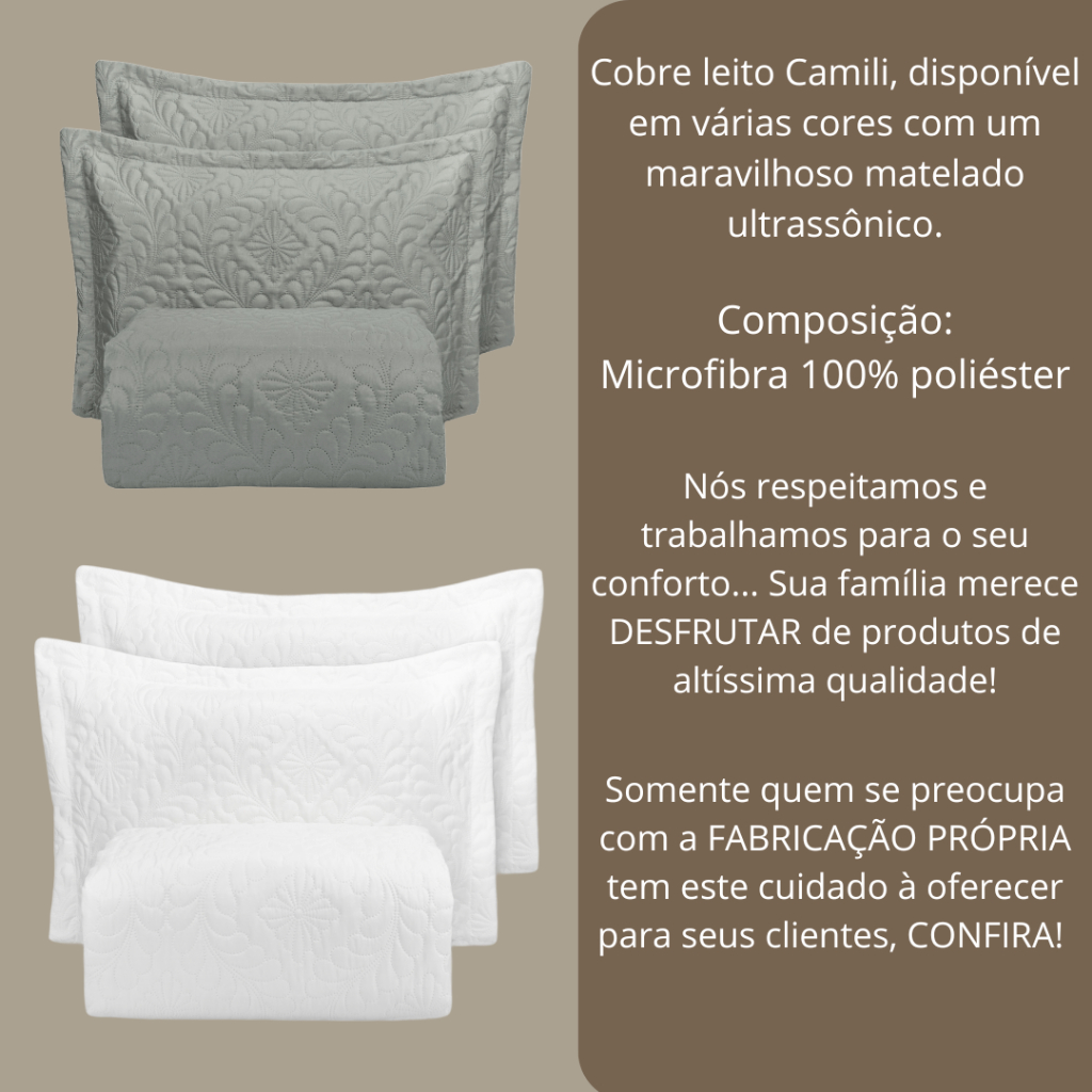 Kit Colcha Cobre Leito Dupla Face Ultrassônica 3 Peças Camili | Super King, Queen e Casal