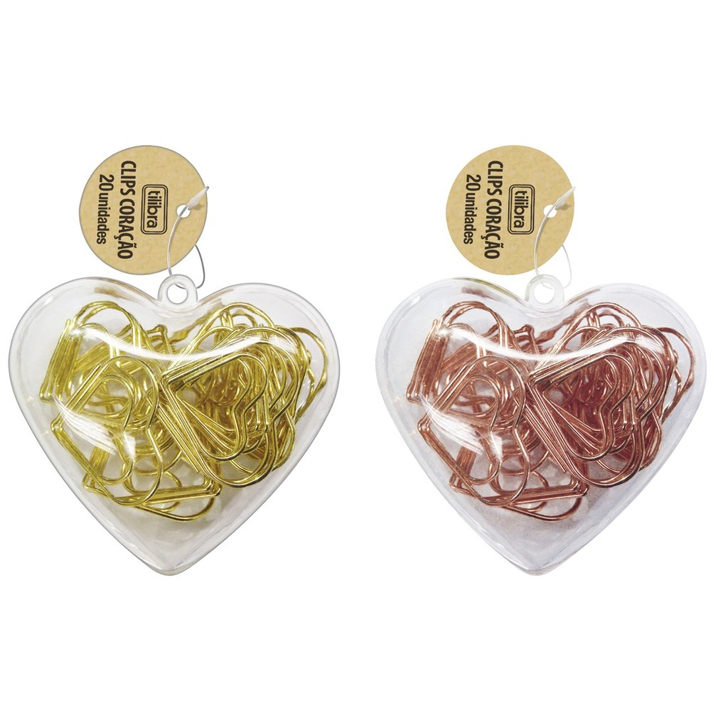 Clips Coração 20 unidades Dourado Rosé ou Colorido Tilibra