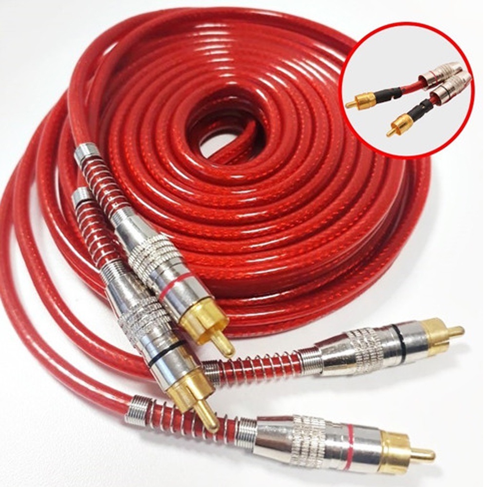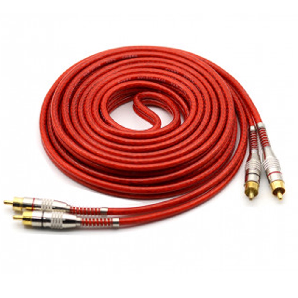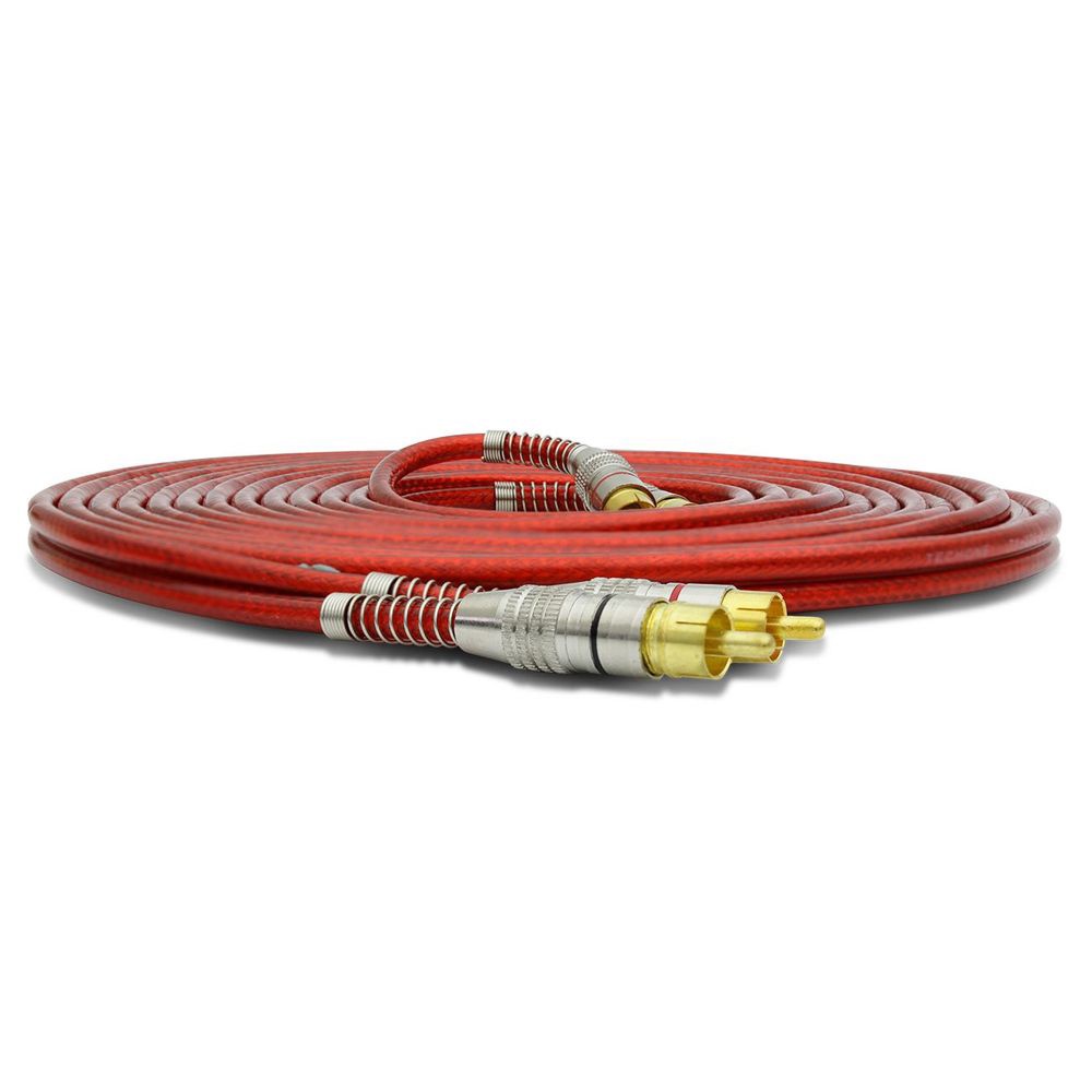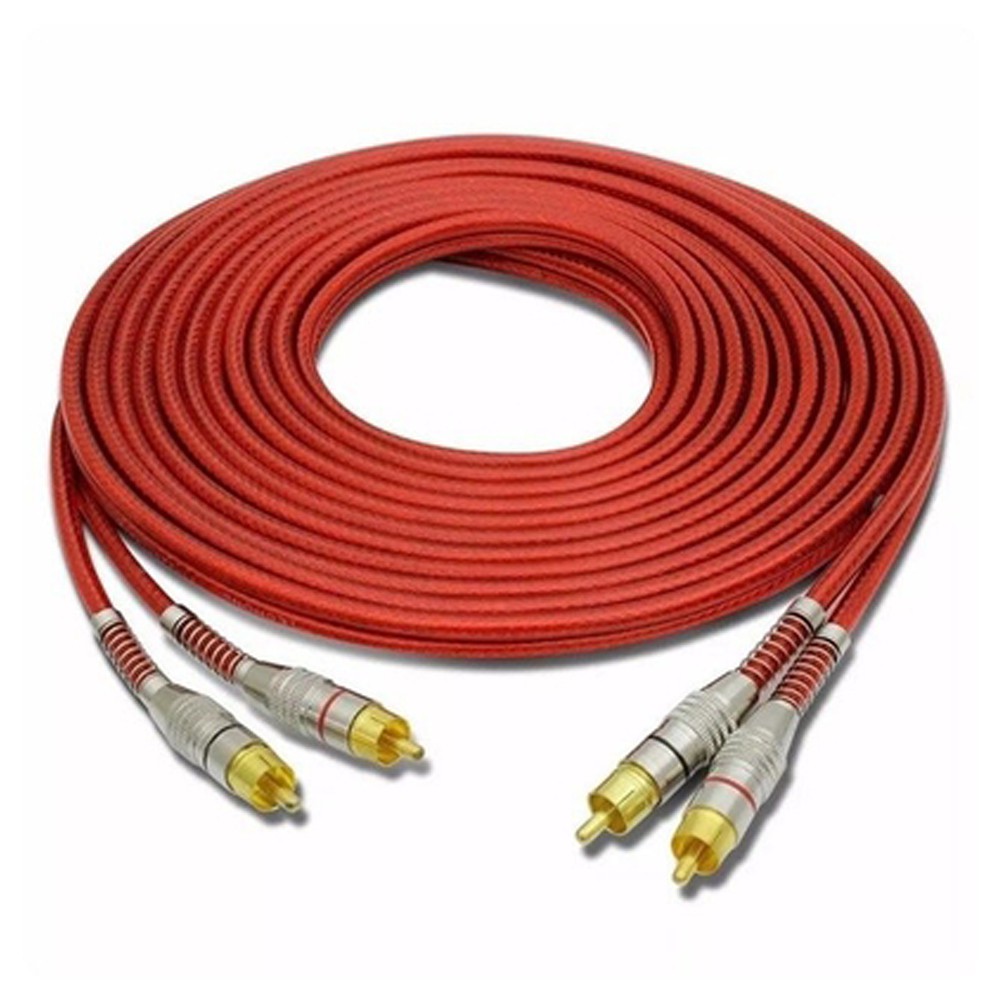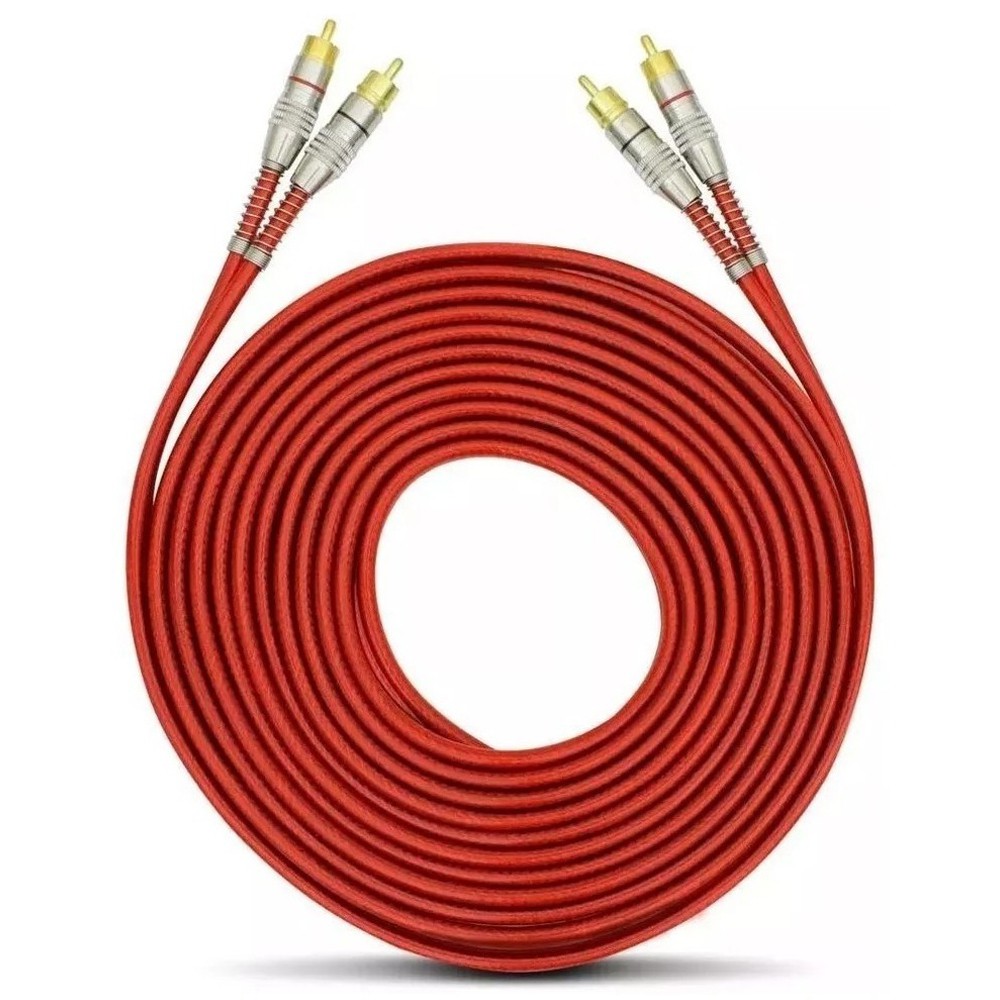 Cabo Rca De 5 Metros Tech One - Svart Vermelho Blindado Conector Ouro Dupla Blindagem