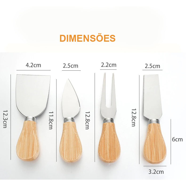 Conjunto Para Queijo Facas Espátula Garfo 4 Peças
