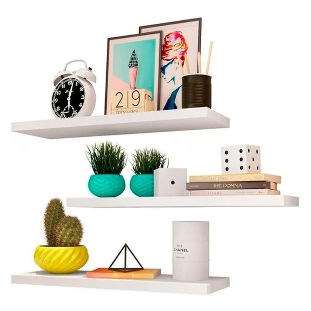 Kit 3 Prateleiras Lisa 40x15cm Mdf Branco De Parede Livro
