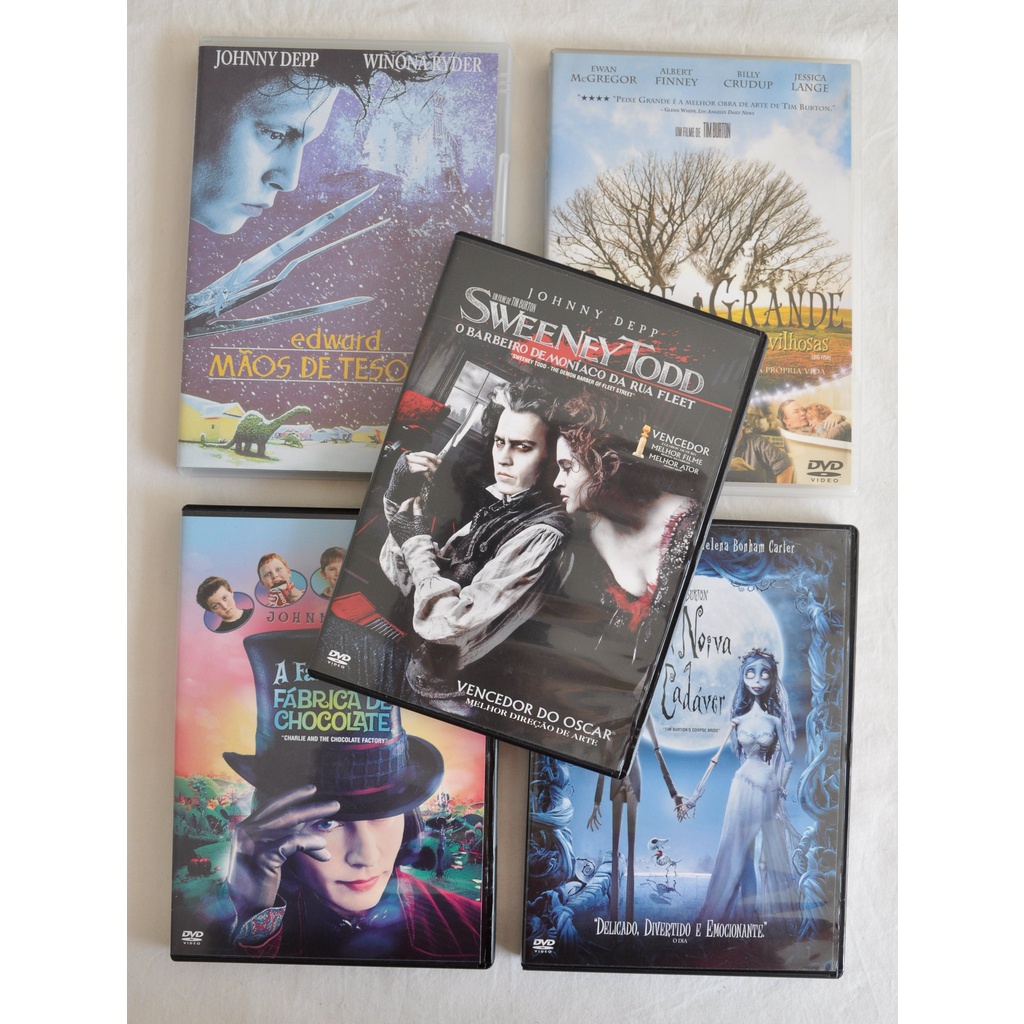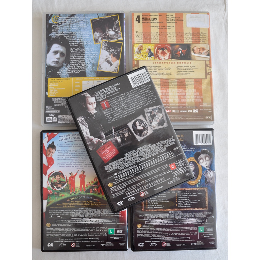 DVD Peixe grande e suas histórias + Edward mãos de tesoura + A fantástica fábrica de chocolate + A Noiva Cadáver + Sweeney Todd