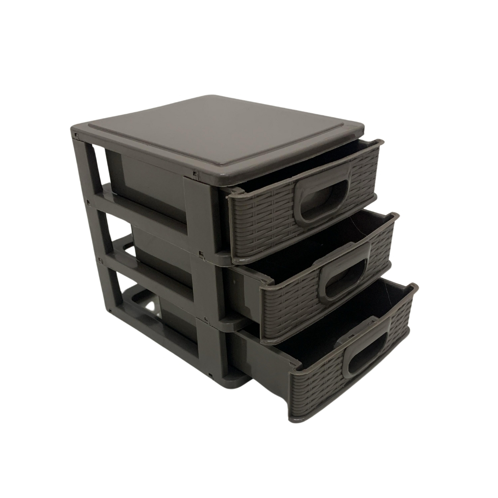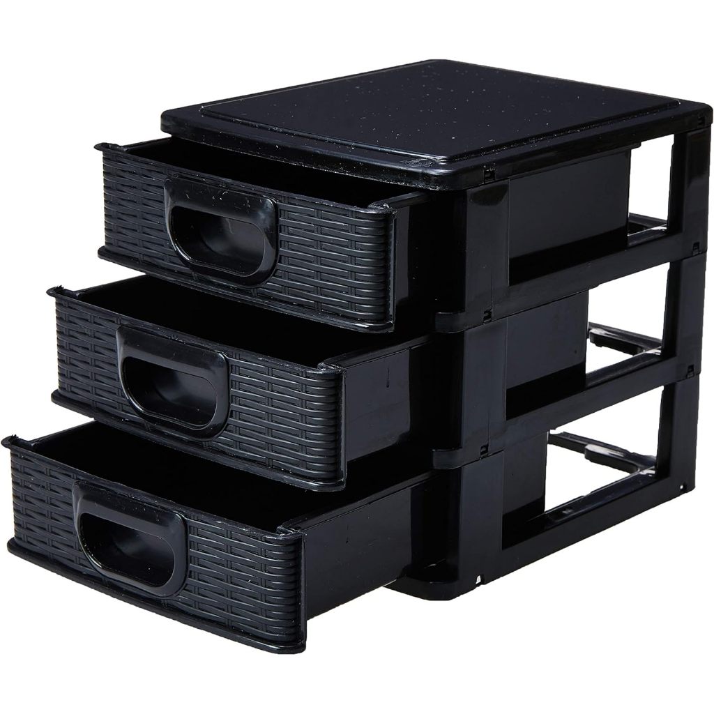 Gaveteiro Organizador De Mesa Micro Porta Tudo 3 Gavetas Cor Preto Branco Rosa e Cinza