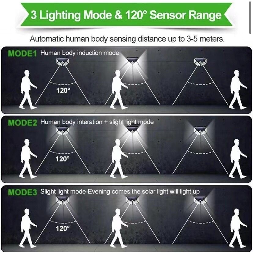 Luminária Solar Parede 100 Led Sensor Presença Com 3 Funções