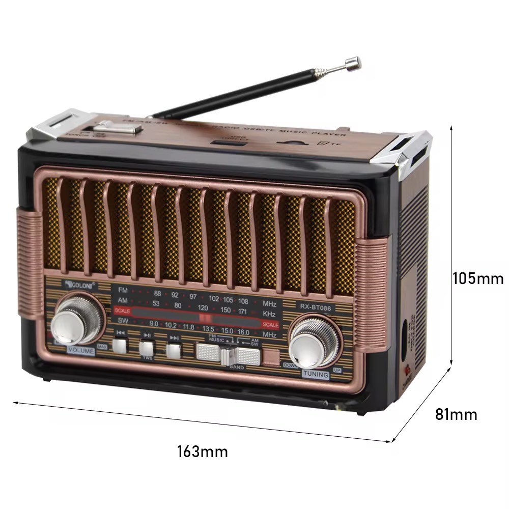 Rádio Retro Portátil Bandas AM/FM/SW com Flashlight Entrada USB