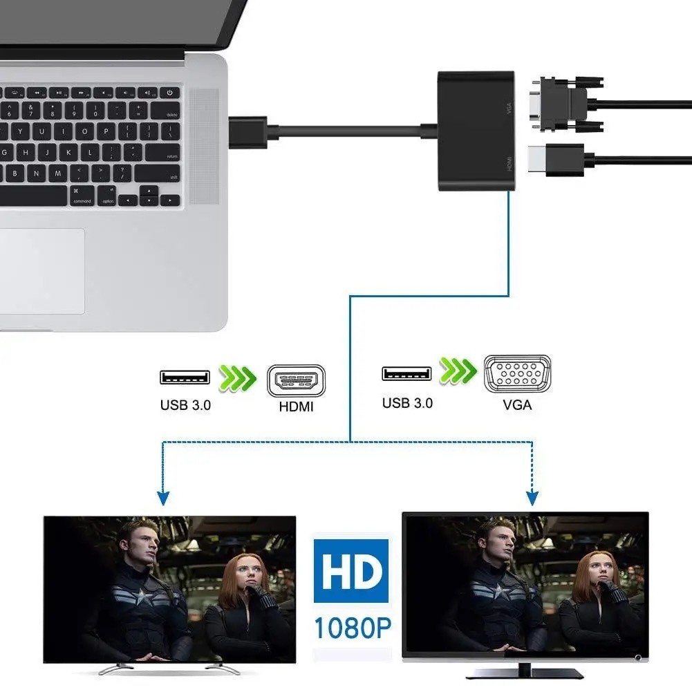 Cabo Adaptador USB 3.0 Para Hdmi Vga Video Audio 1080p