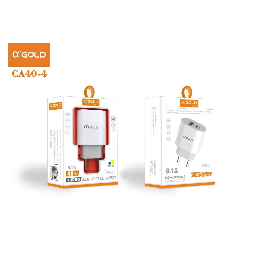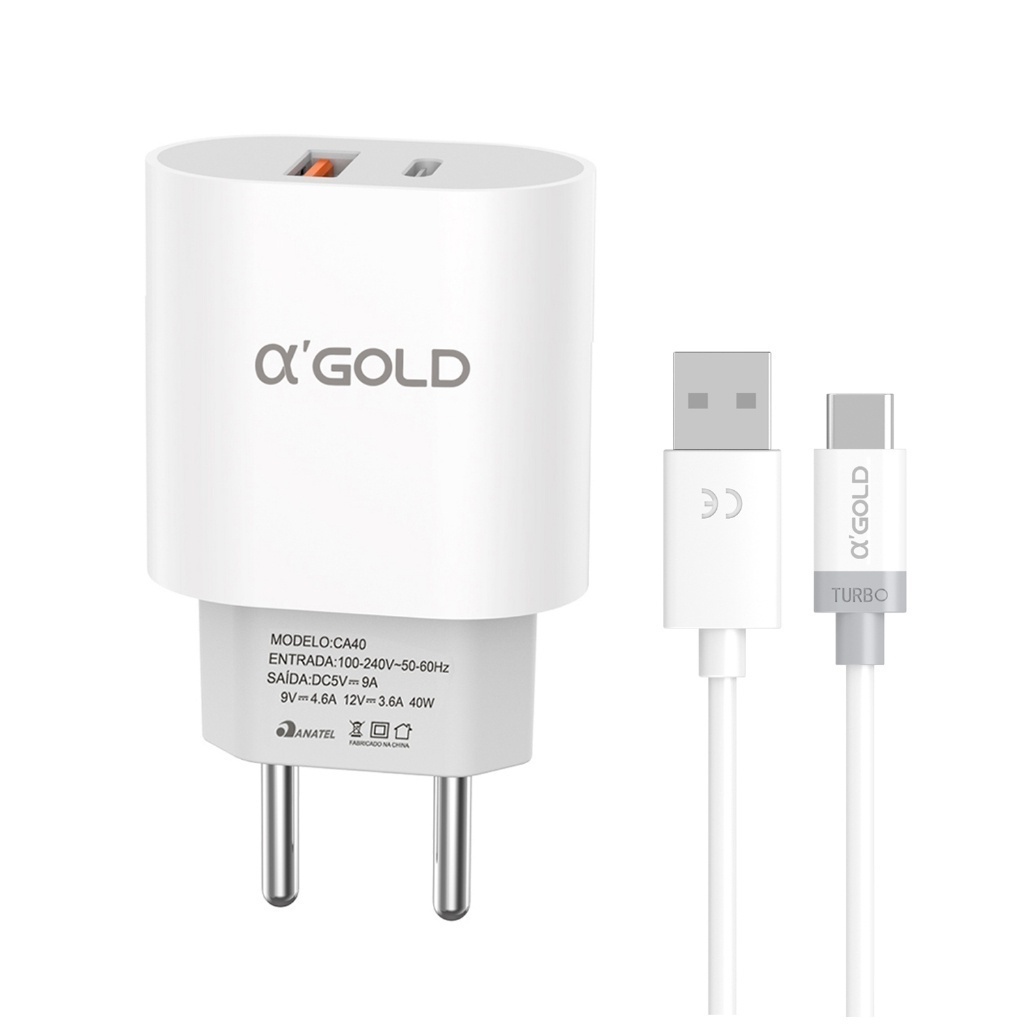 Carregador Turbo 40w Usb Para iPhone Tipo-C V8 - Cor Branco